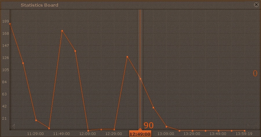 통계 보드는 지정된 기간 동안 특정 유형의 이벤트 수를 그래프로 나타낸 것입니다. 그래프의 점 사이의 이벤트 유형과 시간 양은 보드 설정에서 구성됩니다 (Configuring a Statistics Board 참고).