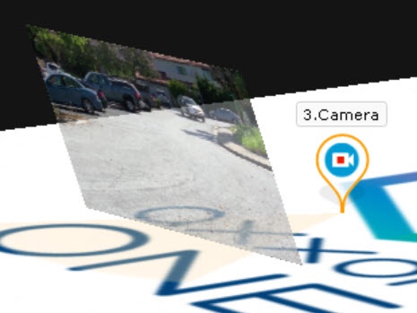맵에서 카메라 아이콘을 클릭할 때 동작을 변경하려면 다음 버튼을 사용하세요: (카메라로 레이아웃으로 이동합니다)/ (Immersion 모드로 전환합니다 (Immersion 모드) 참고)