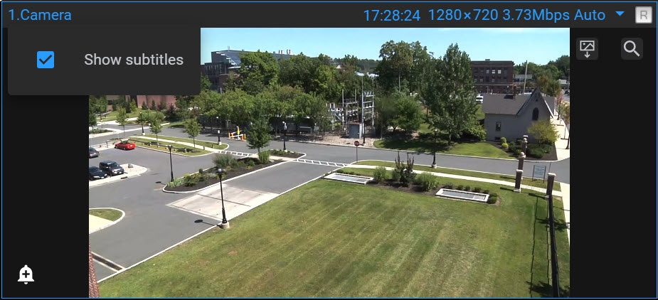 비디오 카메라 보기 창에서 자막 표시를 활성화할 수 있습니다. 이렇게 하려면 카메라 이름을 클릭하고 자막 표시 확인란을 설정합니다.
