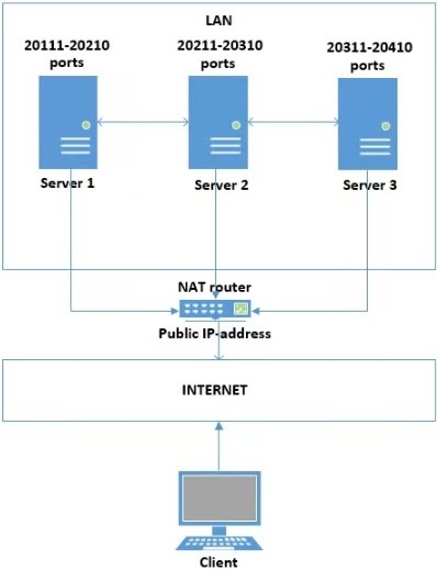 외부 네트워크에서 클라이언트를 연결하는 경우, 외부 네트워크에 접근할 수 있는 서버만 Axxon 도메인 구성에서 사용할 수 있습니다 (Consolidating the Servers from different networks into Axxon-domain 참조).