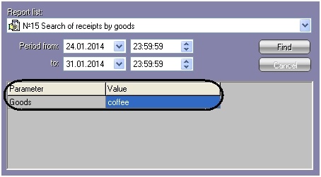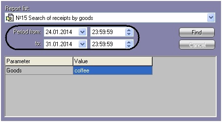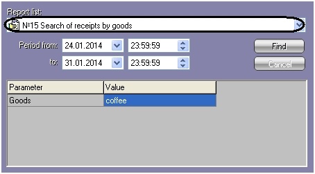 №16 List of all receipts of cashierCashier nameSearch for receipts containing the specified cashier name for the specified period.
