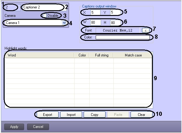 9 | Word | Text field | The word to highlight | Text line | – | String of any symbols |
