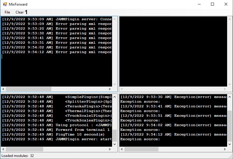 appears in the system tray. In case of correct configuration settings in the mixforward.exe.xml file, the data packages sent to the local port from POS-terminals, are routed automatically to POS-servers.To view the data reception and redirection information, double-click the MixForward icon in the system tray.