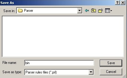 2. In the standard Windows Save as dialog box that appears, enter a file name, select a folder, and save the parser file with the .prl extension.