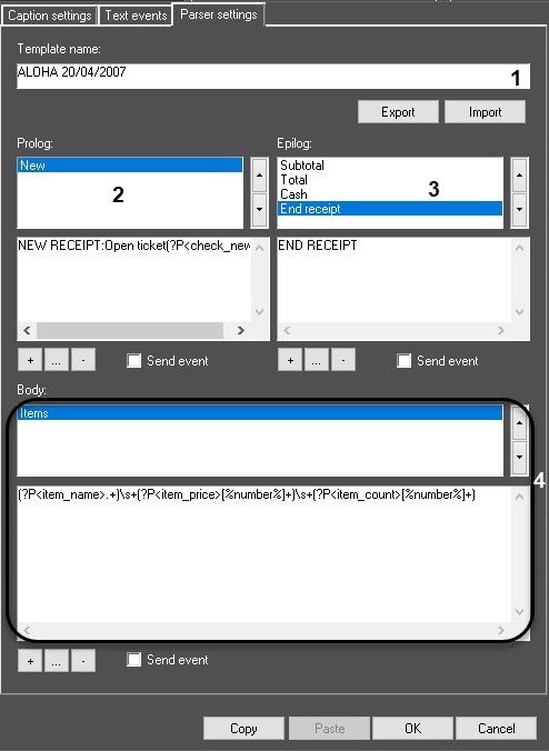 Preliminary import with the help of Import button is necessary to edit the parser. Parser import order is identical to that one, described in .prl parser import.