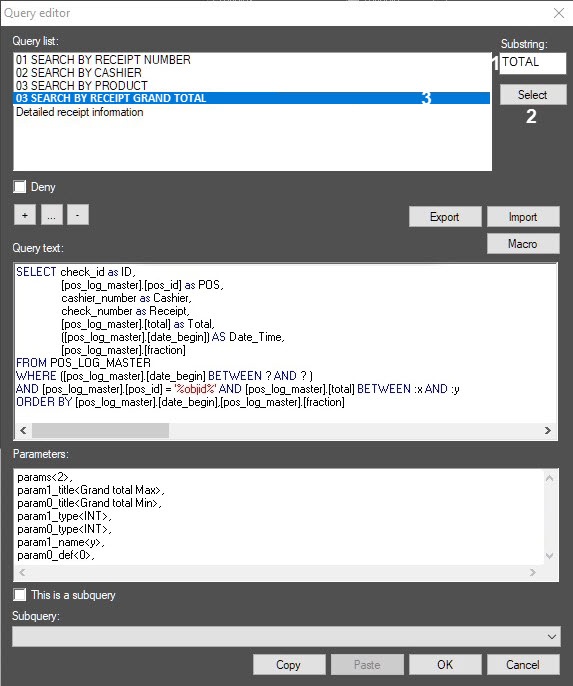 3 | Query text | Text field | The text of the query | SQL language | - | - |