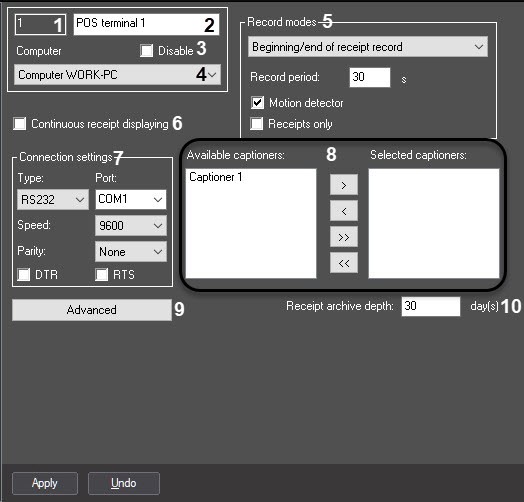 9 | Advanced | Button | Opening additional POS terminal object settings | – | – | – | |