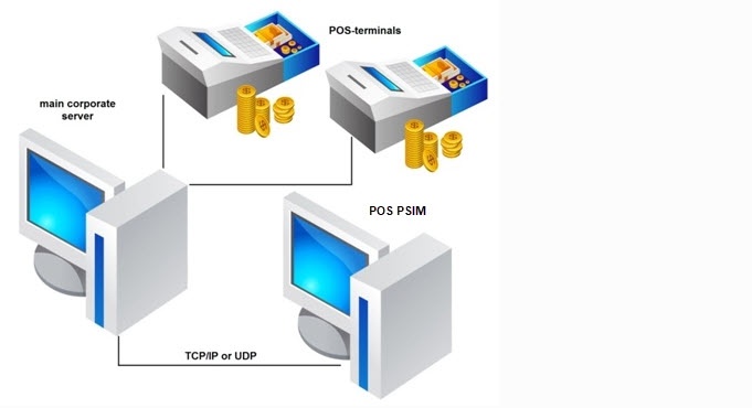 The main corporate server connected to the POS-server via LAN can be used to route the data from the POS-terminals.