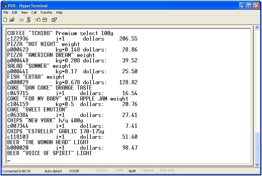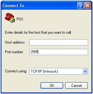 To test the connection of the POS-server to POS-terminals, use the HyperTerminal utility. This program is free and not included in Windows OS.