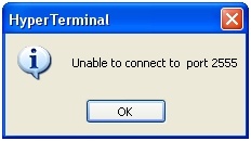 An information box will appear with the following message: Unable to connect to port 2555. Click OK to close this box, then click Wait for a Call in the Call menu.