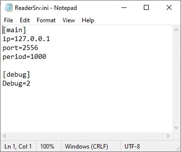To start ReaderSrv, run the ReaderSrv.exe file. The utility is launched in hidden mode. To display the Reader Server window double click
