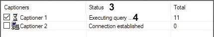 The Status column (3) displays the search status (the Executing query status (4) for all selected captioners).