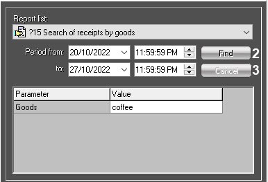 Before starting the search, select the POS terminals, the data of which will be searched, by setting the checkboxes next to the required POS terminals (1) in the POS terminals state table.
