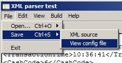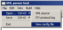The xml_titles.txt parser file replying for displaying is loaded to the second window. To open xml_titles.txt file select the File -> Open ->View config file menu.