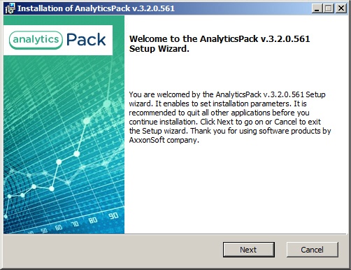- Start the setup.exe file from the archive of Analytics Pack installer package.