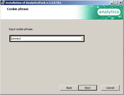 For correct working of Analytics Pack subsystem specify the same cookie phrase on all servers where the Analytics Pack is installed.