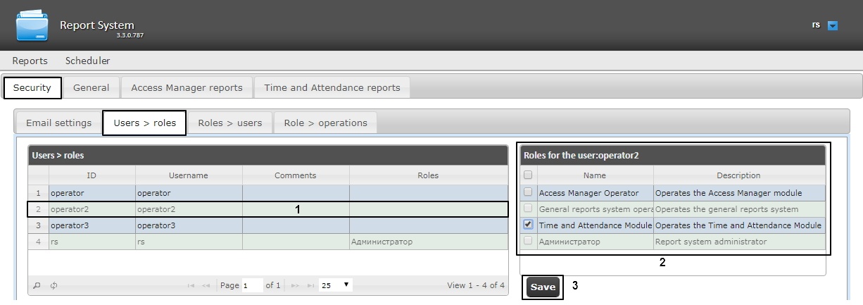 - Go to the Security >Users > roles tab.