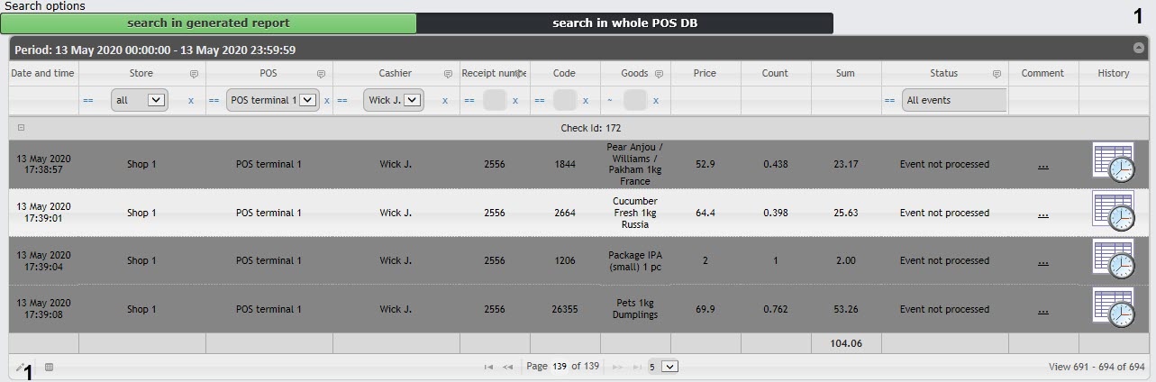 1. Select the required event in the detailed report (see Viewing data from the POS terminal and the video of event).