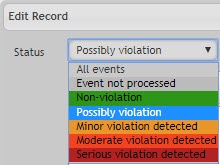 As a result, the status for the specified event will be changed and the comment will be specified.