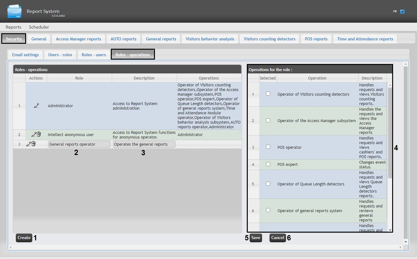 4. In the Operations for the role table (4) in the Selected column set checkboxes for those operations that should be solved by users with a new role.