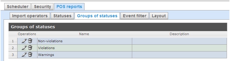 By default three groups of statuses of POS events are already created in Intellect Web Report System.