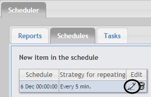 - As a result the Edit the schedule item form is displayed. Editing a schedule item is similar to creating a schedule item (see Creating the schedule item).
