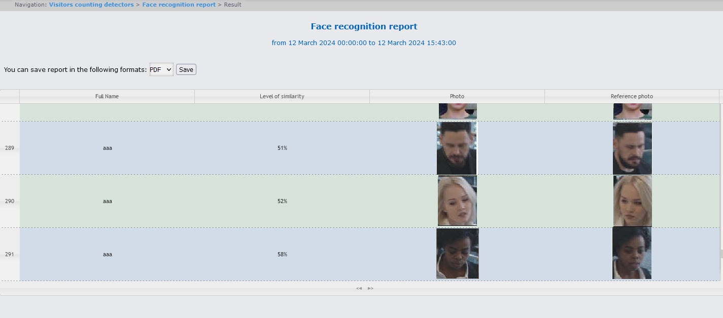 Example of a face recognition report: