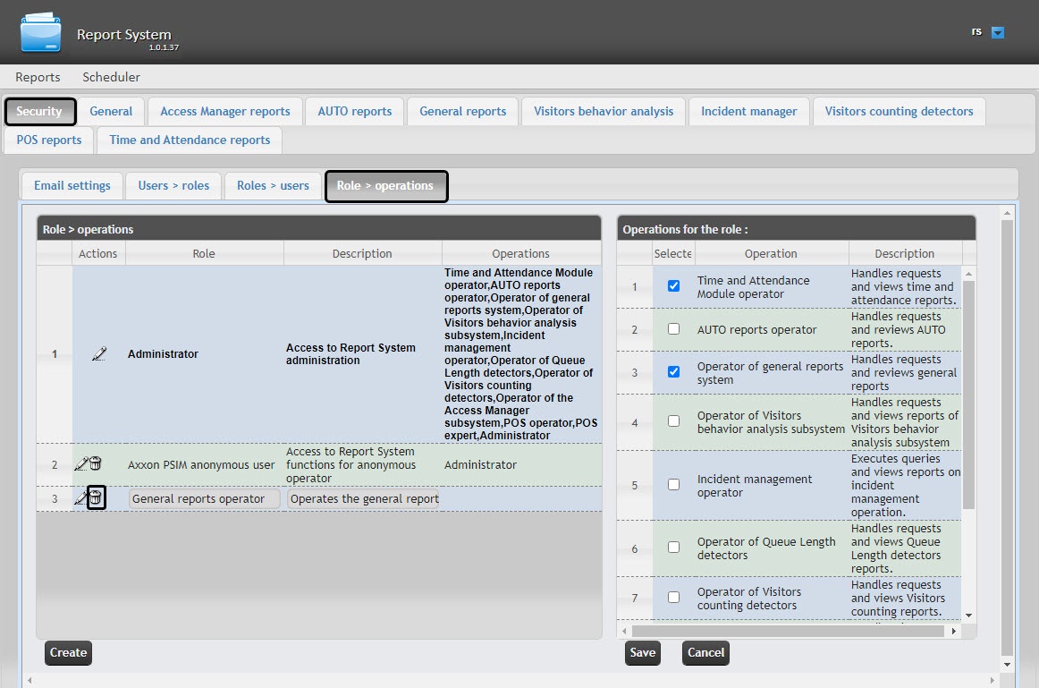 - Go to the Security → Role > operations tab.
