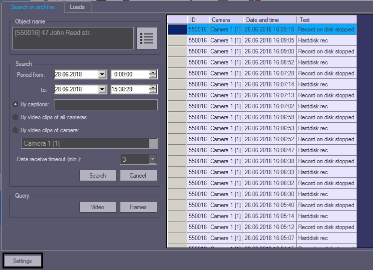 - On the computer with installed Monitoring software, open the Search in archive interface in the Additional workplace configuration.