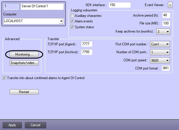 - Click the Monitoring… button. As a result, the box for configuring the list of Additional workplaces appears.