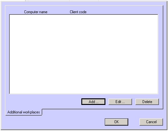 For the Additional workplaces software operation, it is necessary to configure the list of additional workplaces in the Server of Control, and specify the computer name and client code for each of them.