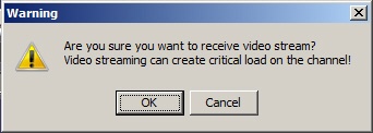 If the Monitoring software have the corresponding setting, then when the camera is selected for viewing live video the warning will be displayed saying that transmission of video can create critical load on the channel. If it is really necessary to view live video, click OK in the Warning dialog box. To cancel viewing live video, click Cancel.