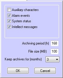 4. Intellect messages: To log messages from Intellect, select this check box. Information is saved in the folder to which the software was installed, in the file video.log.