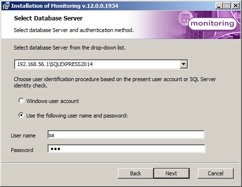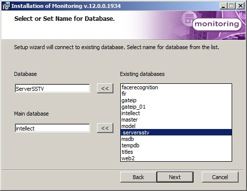 By default, the name of the database is "MonitorSSTV" and its files will be stored in the SQL Server folder.