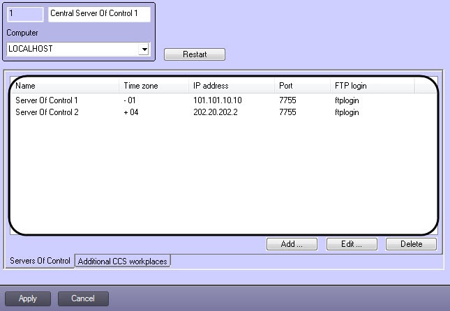 - As a result, the specified Server of Control will be added to the list, and the Central Server of Control will restart automatically.