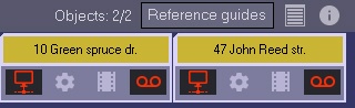 Each object has a corresponding graphic element shown as a rectangle. It contains the object's identification area (at the top) and a configurable number of alarm indication buttons arranged in groups by source type: