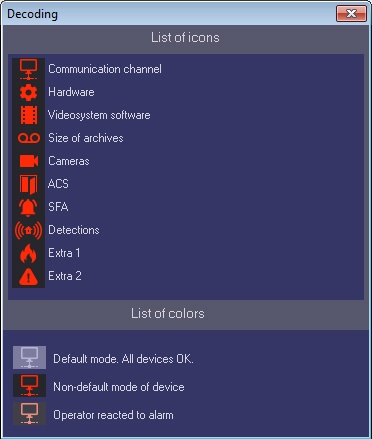 (Information about symbols). When you click this button, the Decoding window opens.By default, if the MonitorSSTV database has not been updated for more than 30 minutes, for example, due to a Data Loader malfunction or if the communication module (license restrictions) has stopped working on the Server Of Control, then: