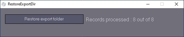 To restore data from the Monitoring database to the export directory, use the RestoreExportDir.exe utility that is installed on the Server Of Control and on the Central Server Of Control at the <Intellect installation directory>\Vhost\SYSTEM path. To start restoring data, click the Restore export folder button.