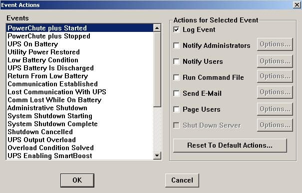 PowerChute plus can be configured so that any of the events listed previously can be sent to the Server of Control.