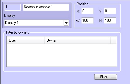By configuring the Search in archive interface object, you can indicate the coordinates at which it is displayed on the screen and set up a filter by owners.