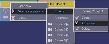 - Right click the object on the control panel and select Video image playback -> Screens -> Add camera in the context menu.